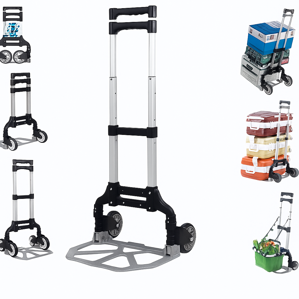 Transporta fácilmente cajas, compras o equipos pesados con esta carretilla de aluminio de alta resistencia, ligera y plegable.